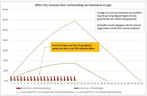 Figuur 1, Effect CO2-emissie door verbranding van biomassa of gas
